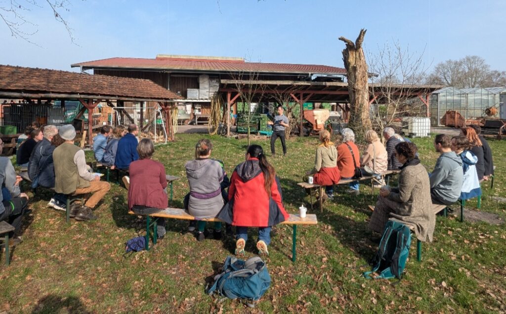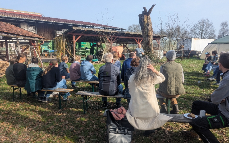 Zum Start des eigentlichen Treffens habe ich die Entwicklung der Solidarischen Landwirtschaft in Grummersort seit 2017 dargestellt. Bei den aktuellen Herausforderungen der allgemeinen Wirtschaftslage mit steigenden Preisen in vielen Bereichen bildet die Solawi eine starke Säule für den Hof, die im nun beginnenden Anbaujahr wieder größer werden soll.