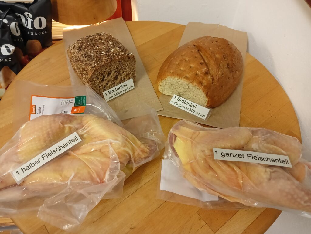 Diese Woche gibt es Leinsaatbrot (1000 g) und Buttermilchbrot (500 g), die ihr frei miteinander kombinieren könnt. Wer nur einen Brotanteil hat, kann sich natürlich auch ein halbes Leinsaatbrot nehmen 😉.