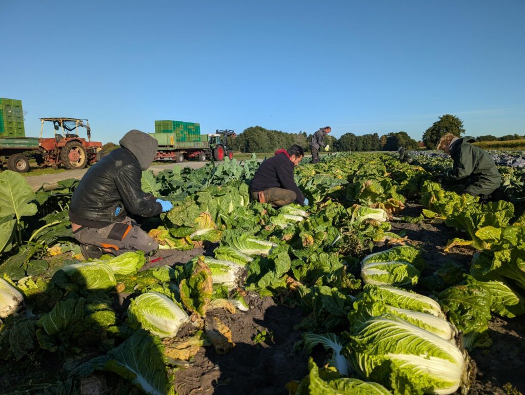 In den nächsten Tagen und Wochen dreht sich auf dem Hof viel um die Ernte fürs Lager. In der vergangenen Woche konnten wir schon die Kürbisse Muscat, Butternut und Hokkaido einlagern. Beim Hokkaido haben wir ein kleines bisschen weniger geerntet als sonst, dafür sind wir beim Chinakohl noch nicht fertig und haben schon eine Riesenmenge im Lager. Johanna hat diesen für die kommende Woche bereits für euch eingeplant 😉 . Diese Woche gehen wir mit Vollgas in die Möhrenernte und versuchen natürlich, möglichst viel für den Winter einzulagern.
