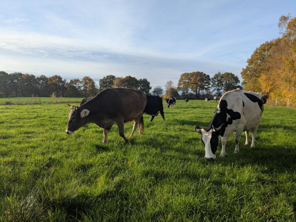 Seit dieser Woche ist die Weidesaison vorbei – die Herde ist nun Tag und Nacht im Stall. Zweimal am Tag holt Malin die Kühe in den Melkstand. In der großen Liegehalle können die Tiere ruhen und an den Raufen leckeres Heu fressen. Die Kälber können jederzeit zu ihren Müttern gehen und sich satt trinken. Die muttergebundene Kälberaufzucht ist im Alltag eine kleine Herausforderung, aber die Beobachtung der gesunden, glücklichen Tiere ist immer eine Riesenfreude !