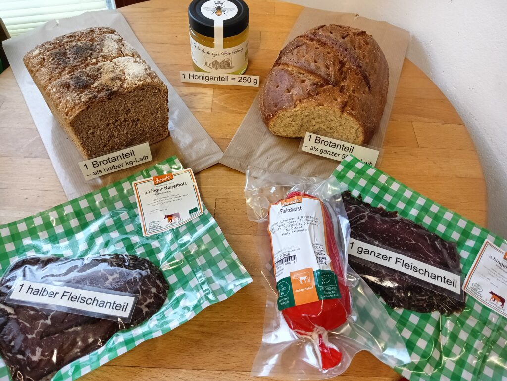 Für die halben Anteile gibt es in dieser Woche eine Packung Rinderschinken „Fiebinger Nagelholz“.