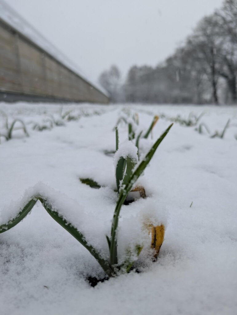 Zum ersten Mal probieren wir in diesem Jahr für euch den Winterknoblauch aus. Aktuell steht er im tiefen Schnee ! Wir sind sehr gespannt was der Frühling bringt: